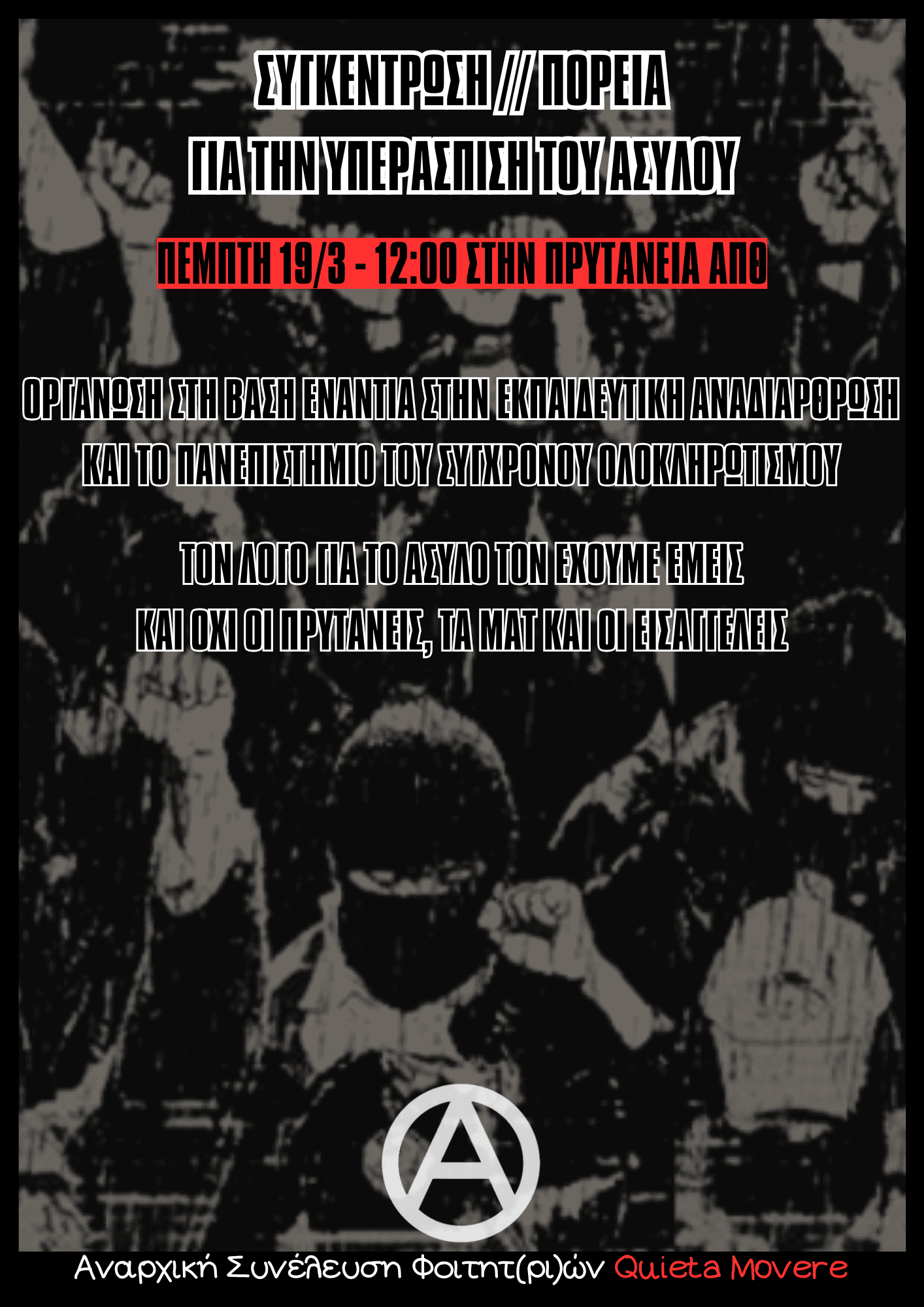 Κάλεσμα του Τοπικού Συντονισμού Θεσ/νίκης της Αναρχικής Πολιτικής Οργάνωσης - Ομοσπονδία Συλλογικοτήτων, σε αντιπολεμική πορεία την Πέμπτη 10/3 στις 18:00 στην Καμάρα
