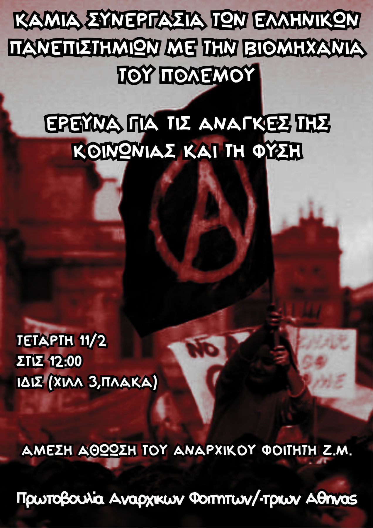 Αντιπολεμική Συγκέντρωση: Σάββατο 26/3, Προπύλαια στις 12.00 [...] Ο χρεοκοπημένος κόσμος της εξουσίας δεν έχει να προσφέρει τίποτα πλέον στους από τα κάτω πέρα από πόλεμο και φασισμό, τίποτα πέρα από προσφυγιά, λεηλασία της φύσης και των κοινωνιών, τίποτα πέρα από εξαθλίωση και θάνατο.