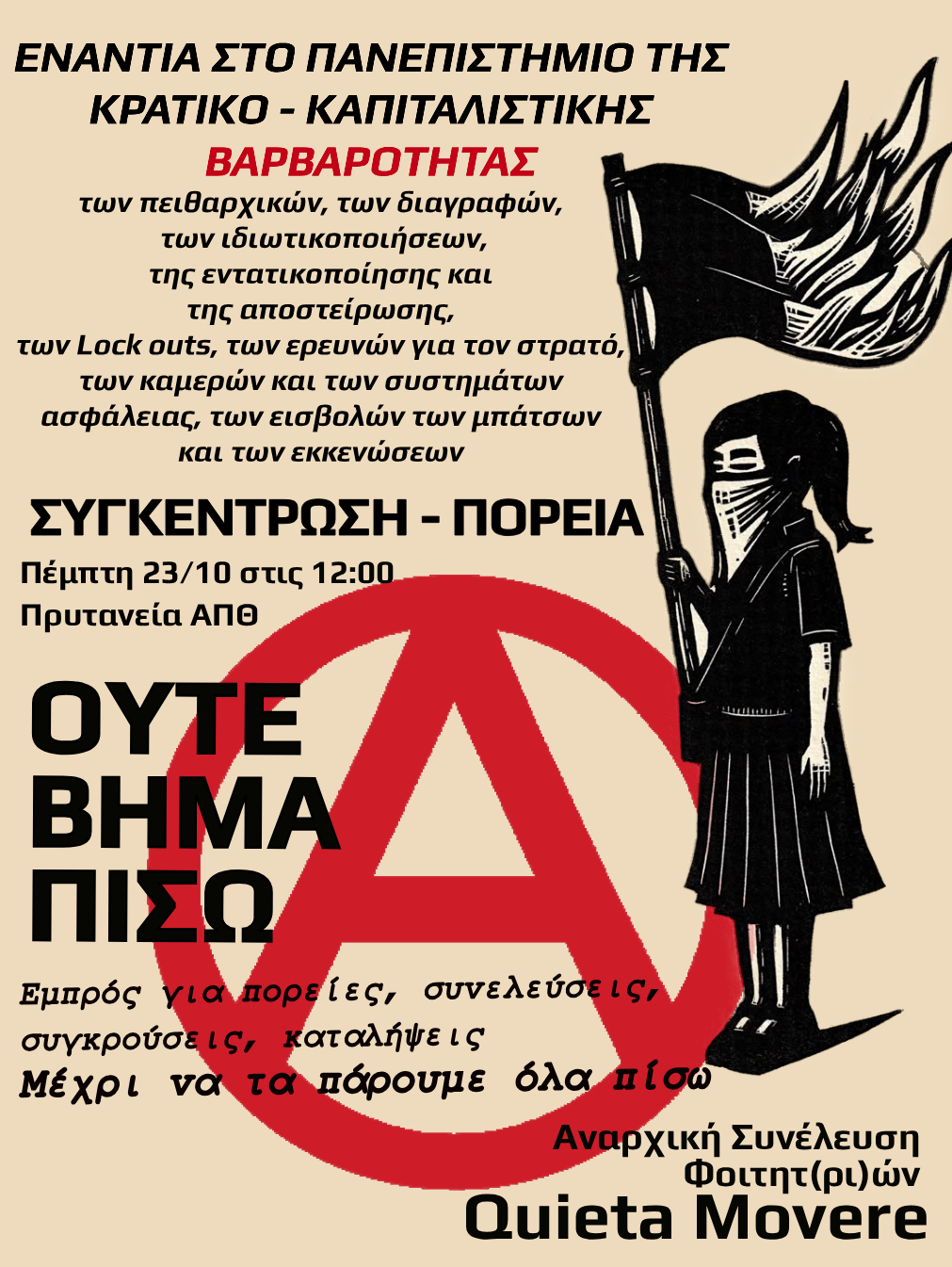 Το βράδυ της Παρασκευής 30/05 αστυνομικές δυνάμεις συλλαμβάνουν μέλος της Πρωτοβουλίας Αναρχικών Φοιτητών/-τριών Αθήνας, έπειτα από μήνυση του πρύτανη του ΕΜΠ Ιωάννη Χατζηγεωργίου στην κρατική ασφάλεια.