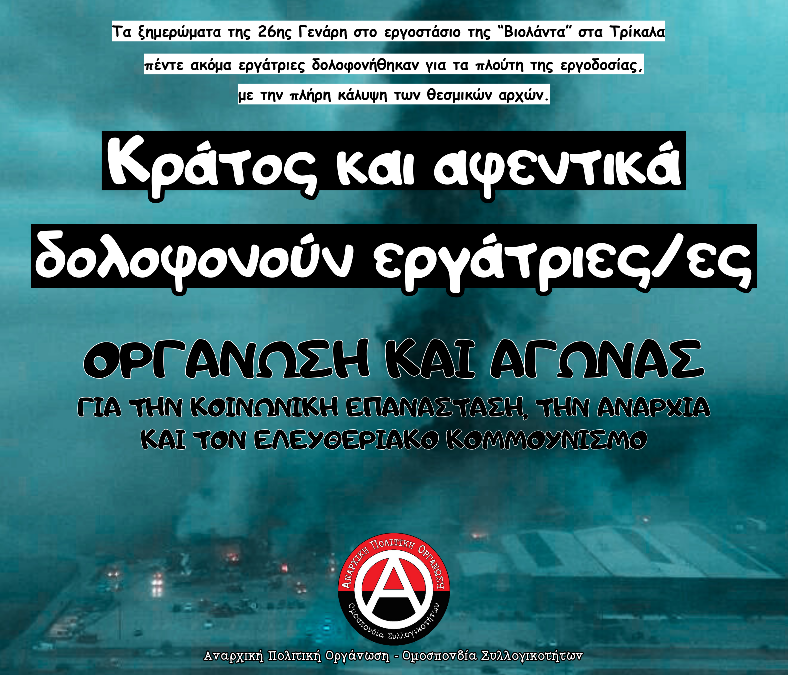 Ανακοίνωση της Πρωτοβουλίας Αναρχικών Φοιτητών/-τριών Αθήνας για τα πρόσφατα γεγονότα στο campus στη Θεσσαλονίκη. [...] Οι φοιτητές/τριες, αναρχικοί/ές και αλληλέγγυοι/ες από την άλλη μεριά έκαναν αυτό που όφειλε να κάνουν και υπερασπίστηκαν τους χώρους τους, συγκρούστηκαν με την καταστολή και συνέχισαν να αποτελούν ανάχωμα στους κρατικούς σχεδιασμούς.