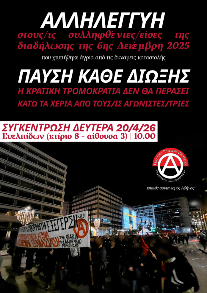 Κάλεσμα στήριξης από το αναρχικό - αντιεξουσιαστικό στέκι Αντίπνοια για την συγκέντρωση - πορεία υπεράσπισης των Εξαρχείων, το Σάββατο 24 Σεπτεμβρίου στις 18:00 στο Μουσείο (Πατησίων).