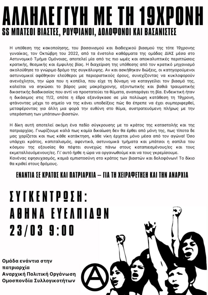ΣΥΓΚΕΝΤΡΩΣΗ/ΠΟΡΕΙΑ ΑΛΛΗΛΕΓΓΥΗΣ ΣΤΗΝ 16χρονη ΔΕΥΤΕΡΑ 30/10 ΣΤΙΣ 19:00 ΚΑΜΑΡΑ
