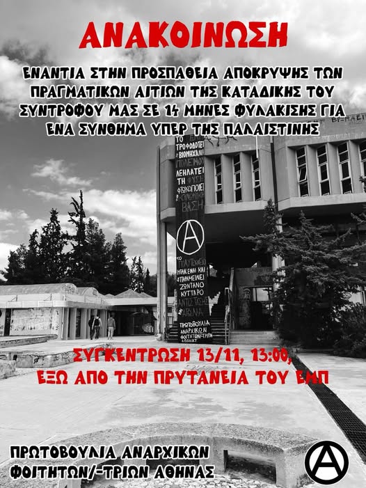 [Αθήνα] 1η Μάη | Κάλεσμα της Πρωτοβουλίας Αναρχικών Φοιτητών/-τριών Αθήνας για την διαδήλωση της 1ης Μάη