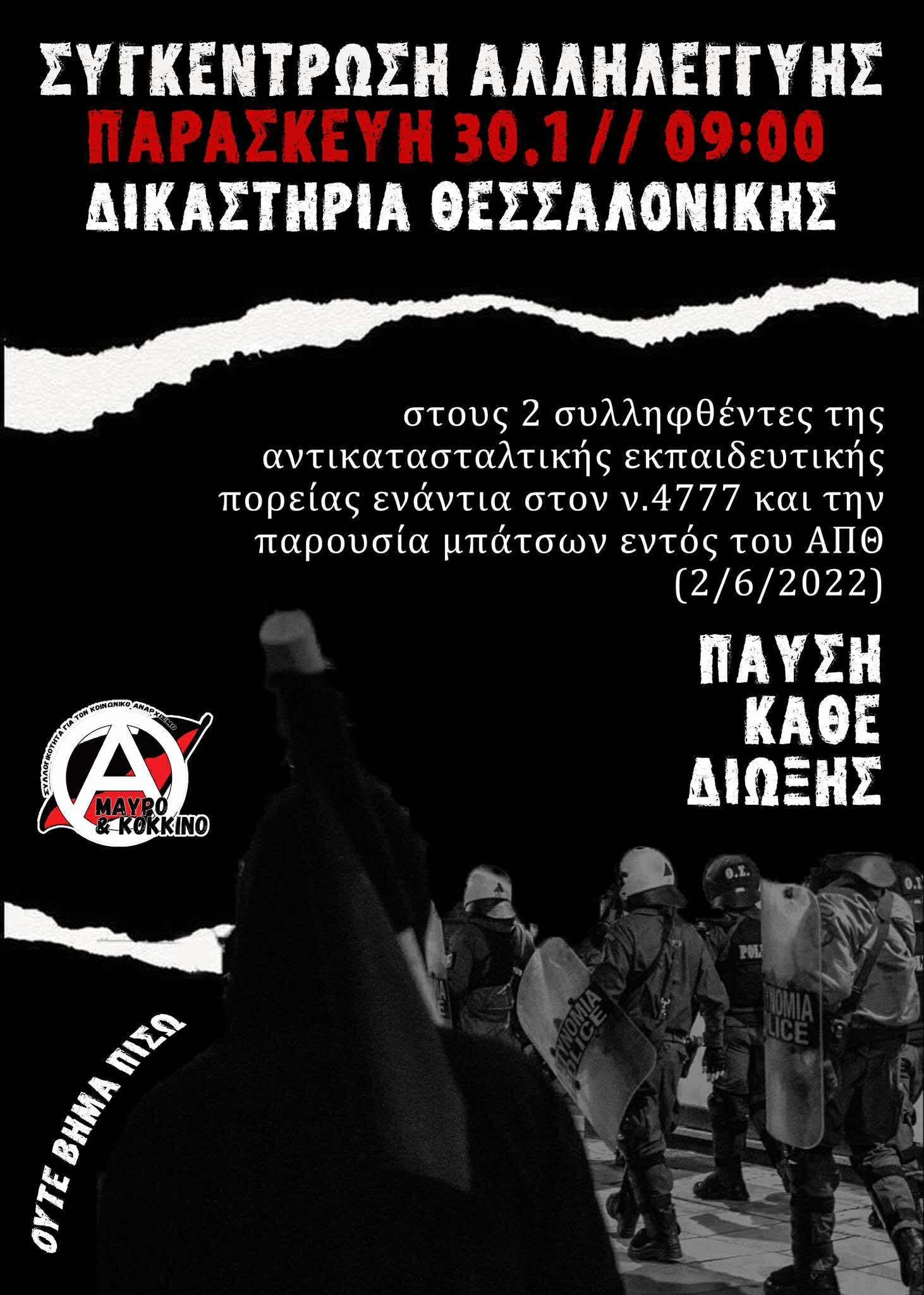 Συγκέντρωση αλλεληγγύης | Δευτέρα 27/01, 09:00 | Δικαστήρια Θεσσαλονίκης